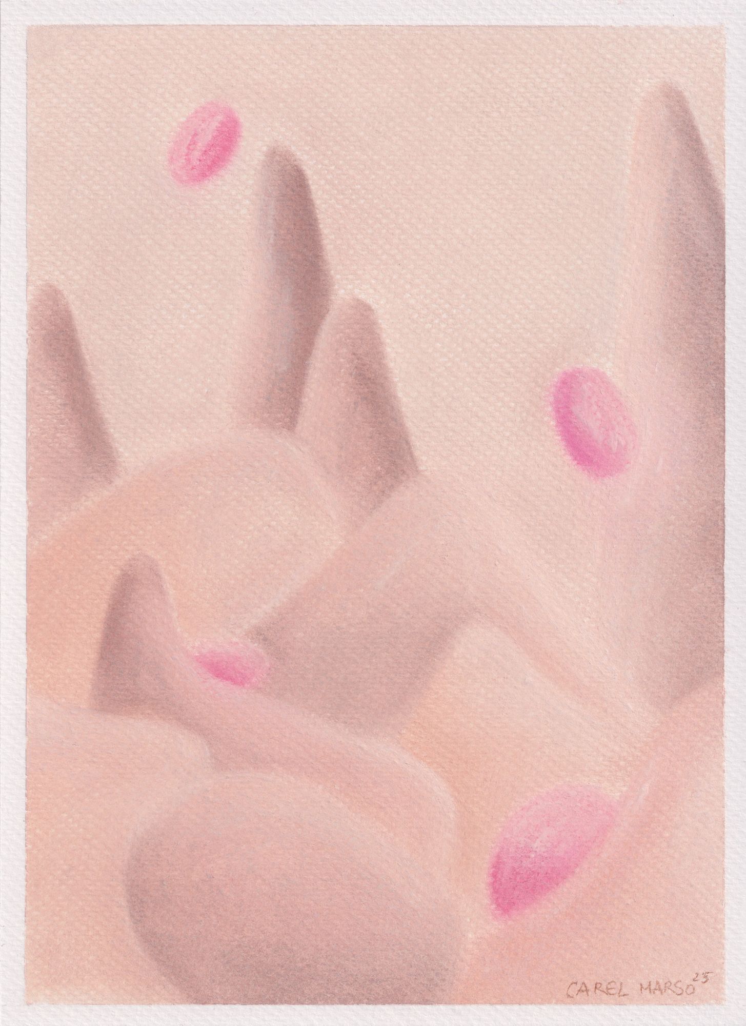Working with organic forms and restrained color palettes, she approaches color as a subtle expressive vocabulary. As historian Michel Pastoureau observes, colors are never innocent; they speak, murmur, and carry meaning. In her practice, color operates through softness and nuance, inviting slow looking and emotional attentiveness.
