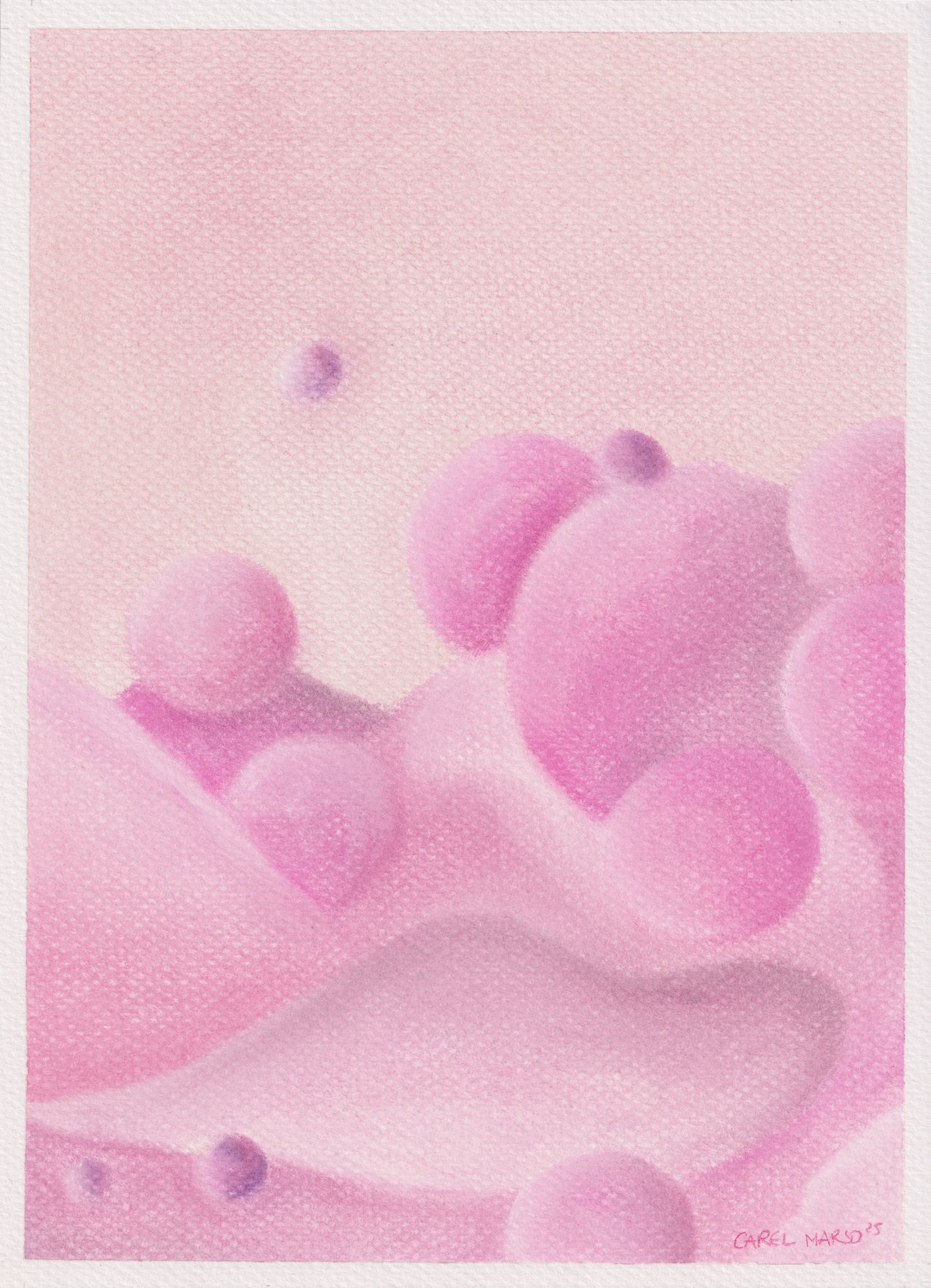 Working with organic forms and restrained color palettes, she approaches color as a subtle expressive vocabulary. As historian Michel Pastoureau observes, colors are never innocent; they speak, murmur, and carry meaning. In her practice, color operates through softness and nuance, inviting slow looking and emotional attentiveness.
