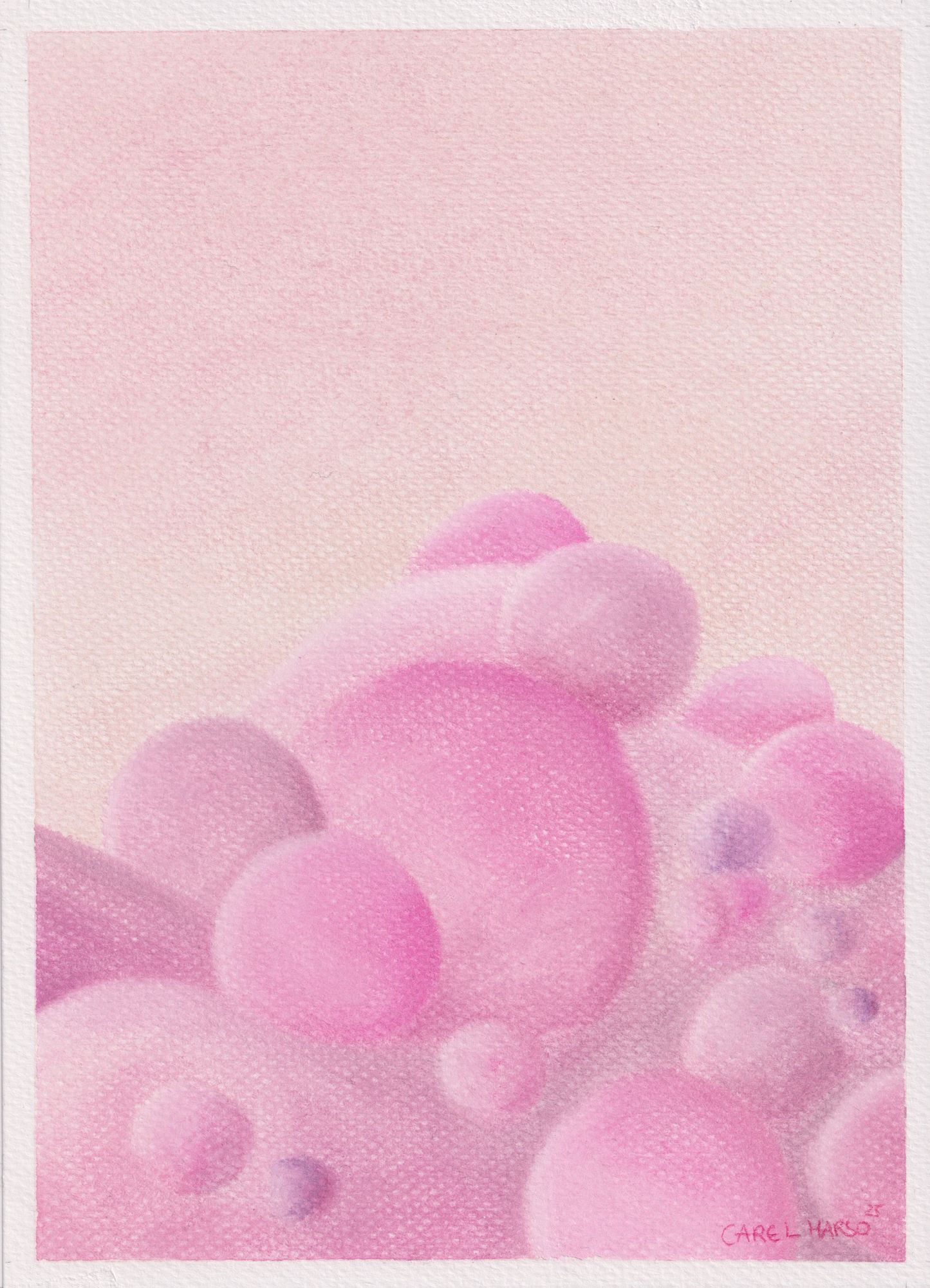 Working with organic forms and restrained color palettes, she approaches color as a subtle expressive vocabulary. As historian Michel Pastoureau observes, colors are never innocent; they speak, murmur, and carry meaning. In her practice, color operates through softness and nuance, inviting slow looking and emotional attentiveness.