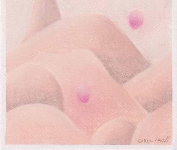 Working with organic forms and restrained color palettes, she approaches color as a subtle expressive vocabulary. As historian Michel Pastoureau observes, colors are never innocent; they speak, murmur, and carry meaning. In her practice, color operates through softness and nuance, inviting slow looking and emotional attentiveness.