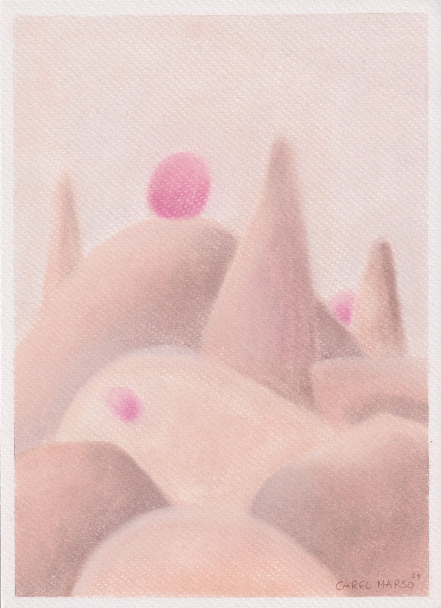 Working with organic forms and restrained color palettes, she approaches color as a subtle expressive vocabulary. As historian Michel Pastoureau observes, colors are never innocent; they speak, murmur, and carry meaning. In her practice, color operates through softness and nuance, inviting slow looking and emotional attentiveness.