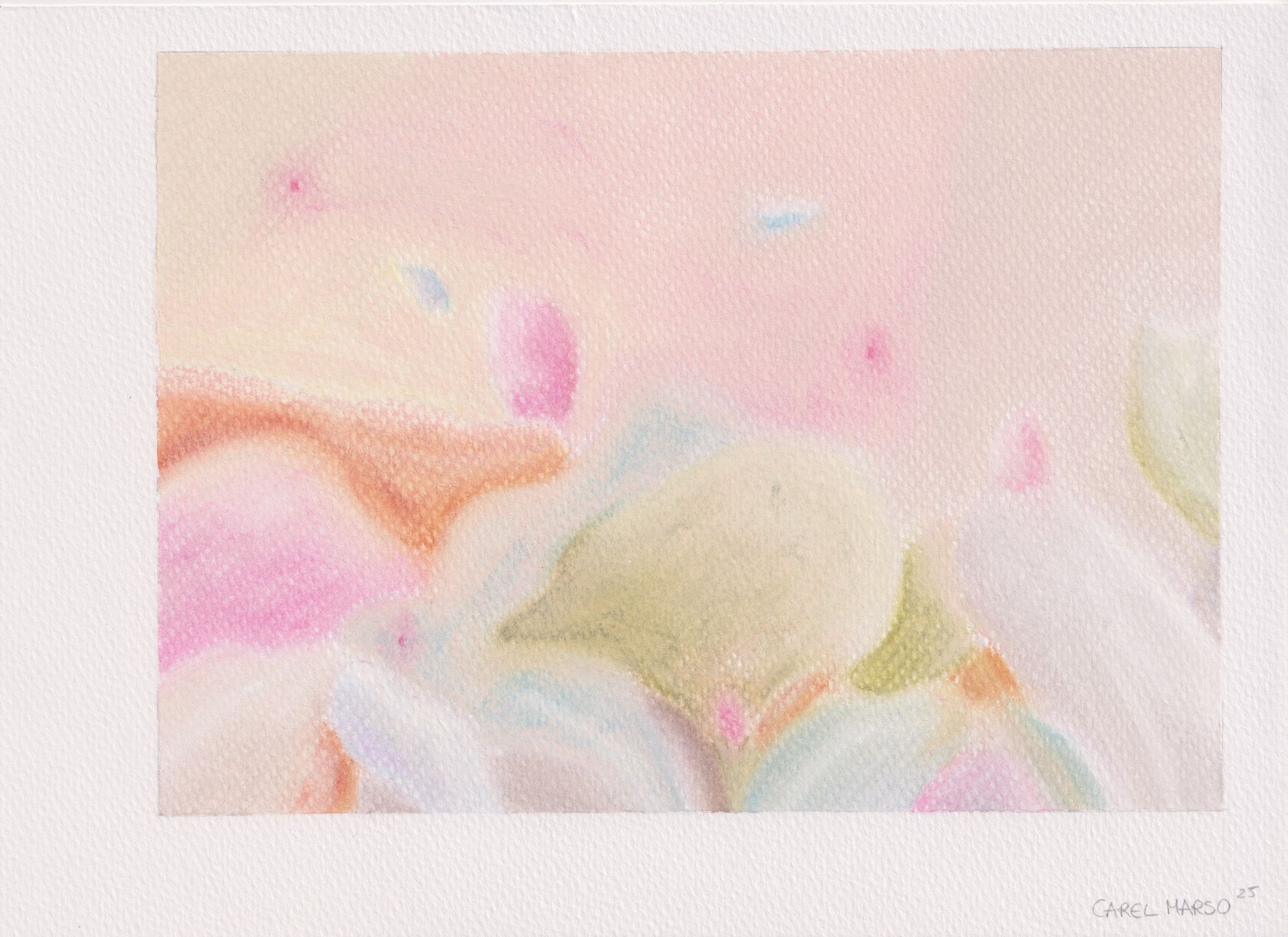 Working with organic forms and restrained color palettes, she approaches color as a subtle expressive vocabulary. As historian Michel Pastoureau observes, colors are never innocent; they speak, murmur, and carry meaning. In her practice, color operates through softness and nuance, inviting slow looking and emotional attentiveness.