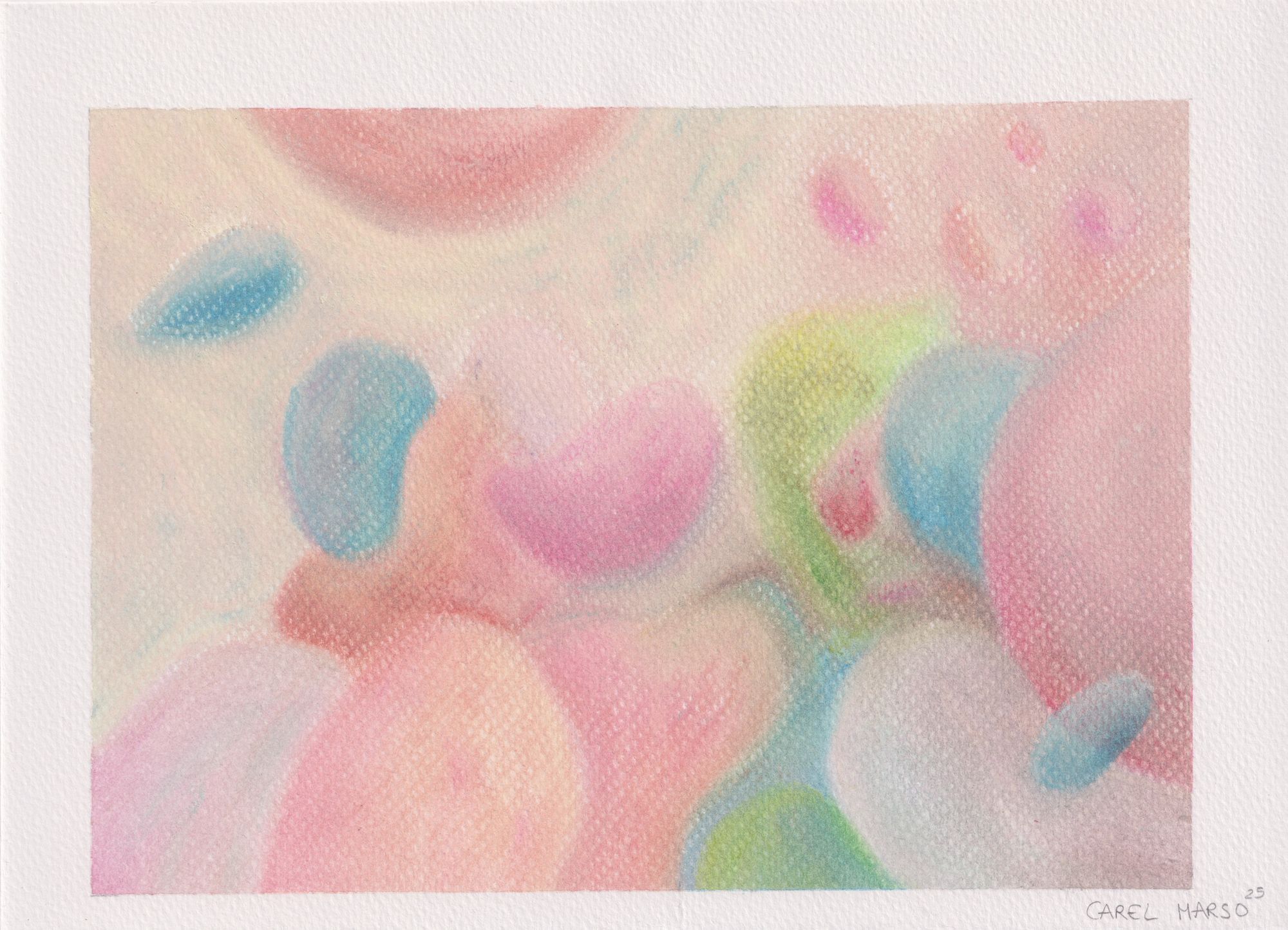 Working with organic forms and restrained color palettes, she approaches color as a subtle expressive vocabulary. As historian Michel Pastoureau observes, colors are never innocent; they speak, murmur, and carry meaning. In her practice, color operates through softness and nuance, inviting slow looking and emotional attentiveness.