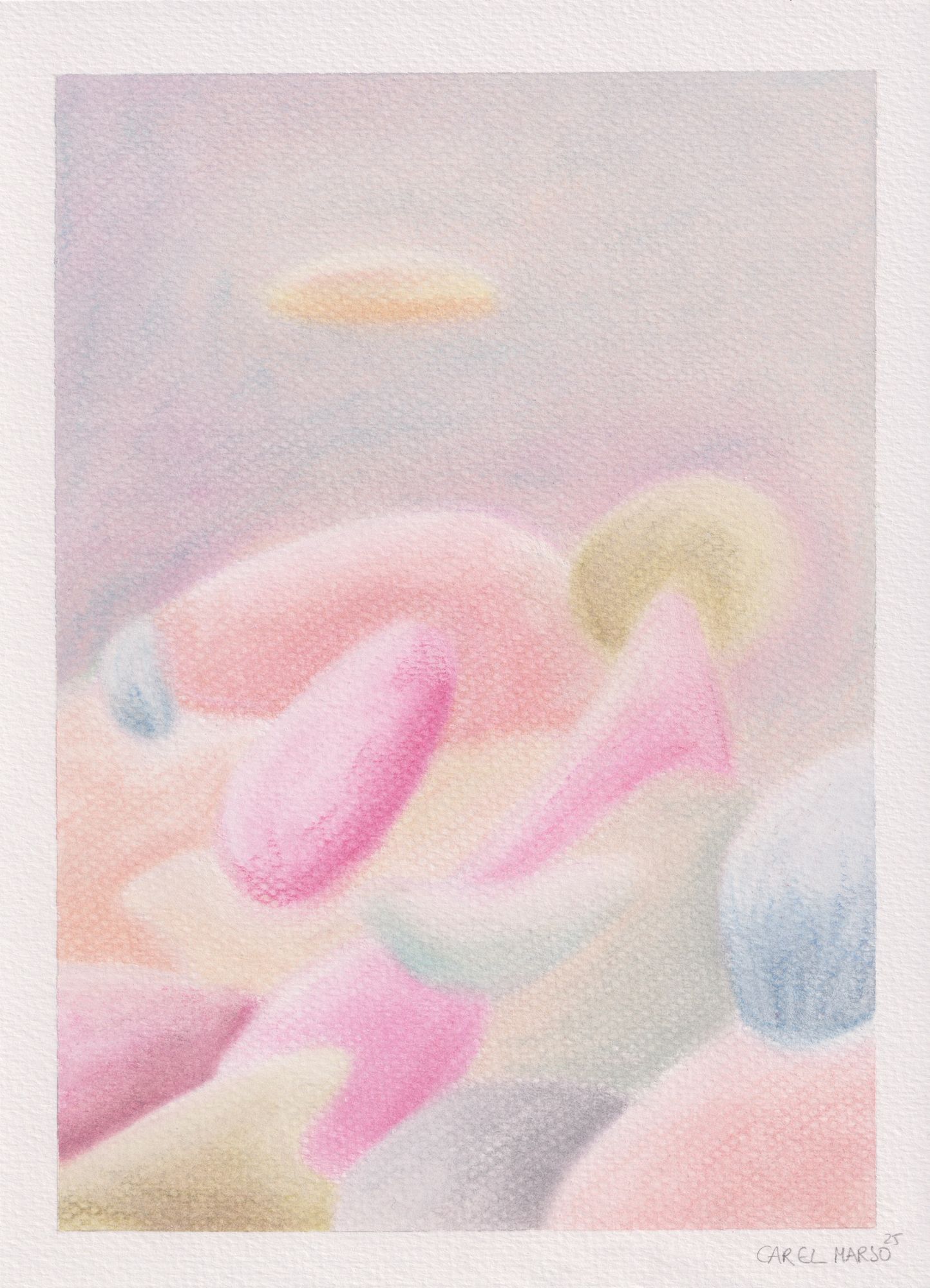 Working with organic forms and restrained color palettes, she approaches color as a subtle expressive vocabulary. As historian Michel Pastoureau observes, colors are never innocent; they speak, murmur, and carry meaning. In her practice, color operates through softness and nuance, inviting slow looking and emotional attentiveness.