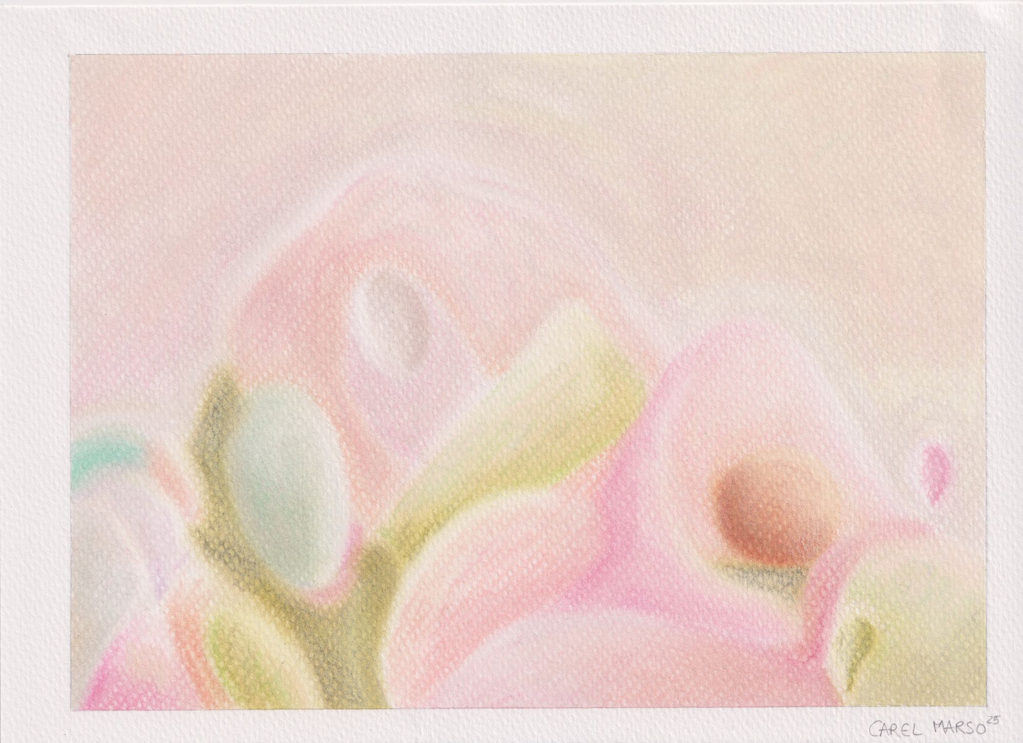 Working with organic forms and restrained color palettes, she approaches color as a subtle expressive vocabulary. As historian Michel Pastoureau observes, colors are never innocent; they speak, murmur, and carry meaning. In her practice, color operates through softness and nuance, inviting slow looking and emotional attentiveness.