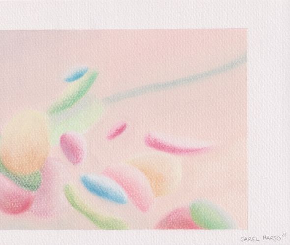 Working with organic forms and restrained color palettes, she approaches color as a subtle expressive vocabulary. As historian Michel Pastoureau observes, colors are never innocent; they speak, murmur, and carry meaning. In her practice, color operates through softness and nuance, inviting slow looking and emotional attentiveness.