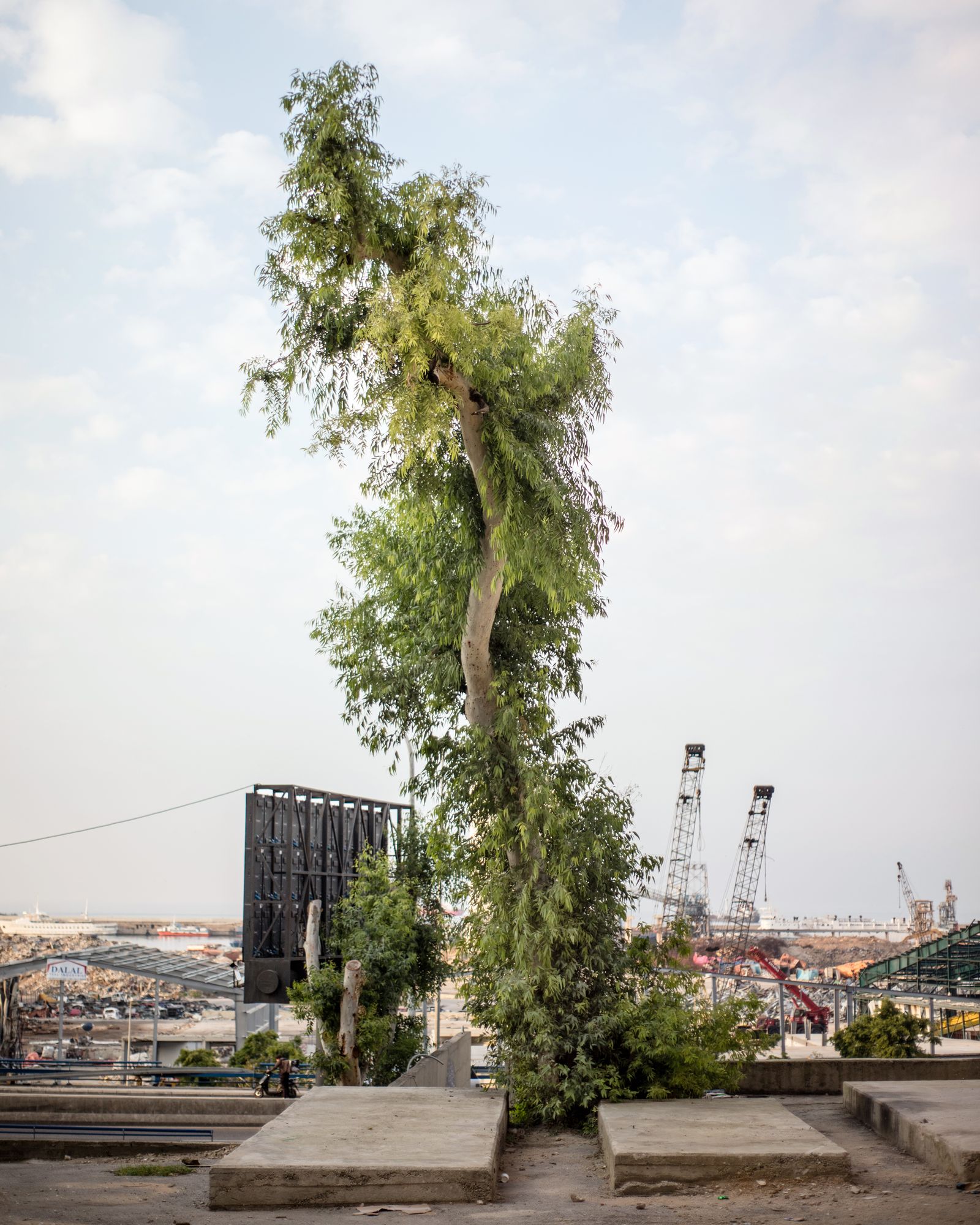 In this series, the city recedes to deal with the disastrous blast and crisis that it has witnessed, its gentle giants stepping out of the shade to share their stories of struggle and survival, not so different from those of the people that they shade or fall for."