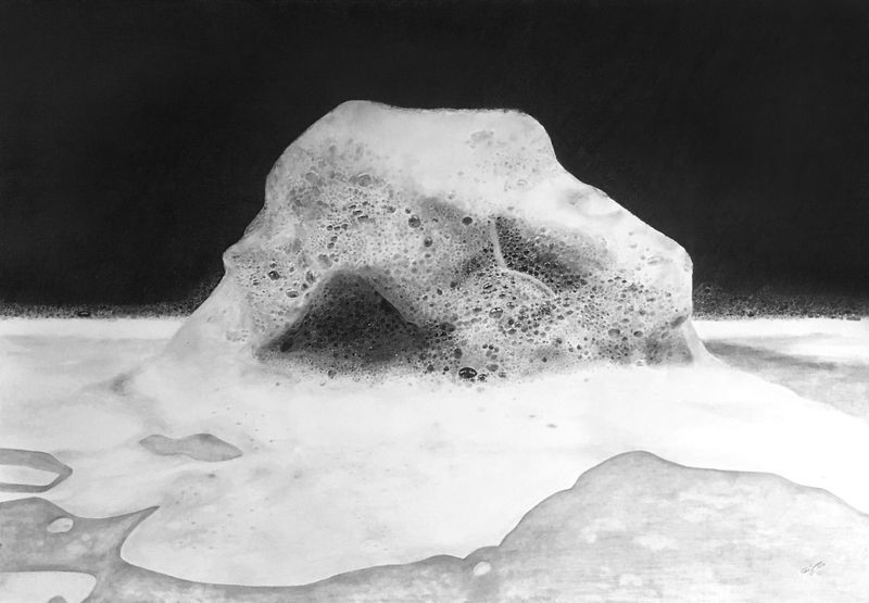 In Sink-ronized, I create forms with soapsuds, sometimes introduce everyday objects, take pictures of them, observe them by making intricate pencil drawings, and then watch them dissipate and disappear in peace. By using soap as a medium, I look to incorporate art into every home. I want people to think of all the possible forms or shapes they can create every time they wash their hands.