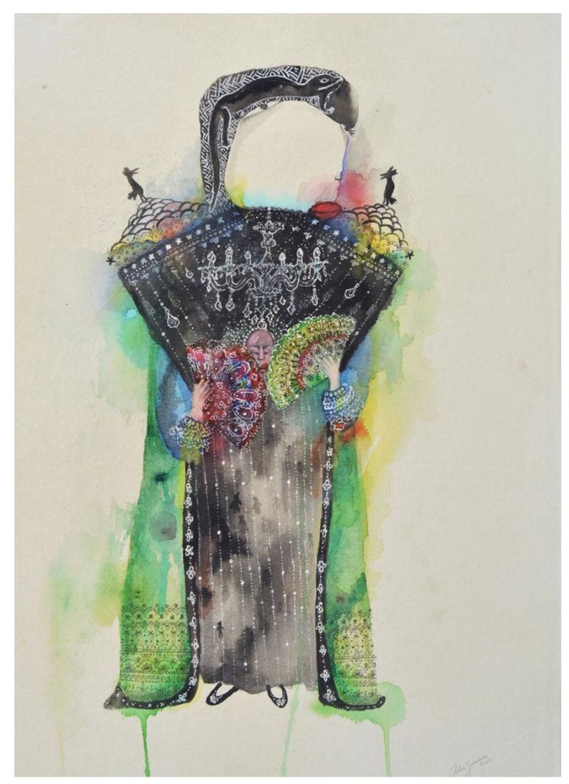 Ink and watercolor on paper