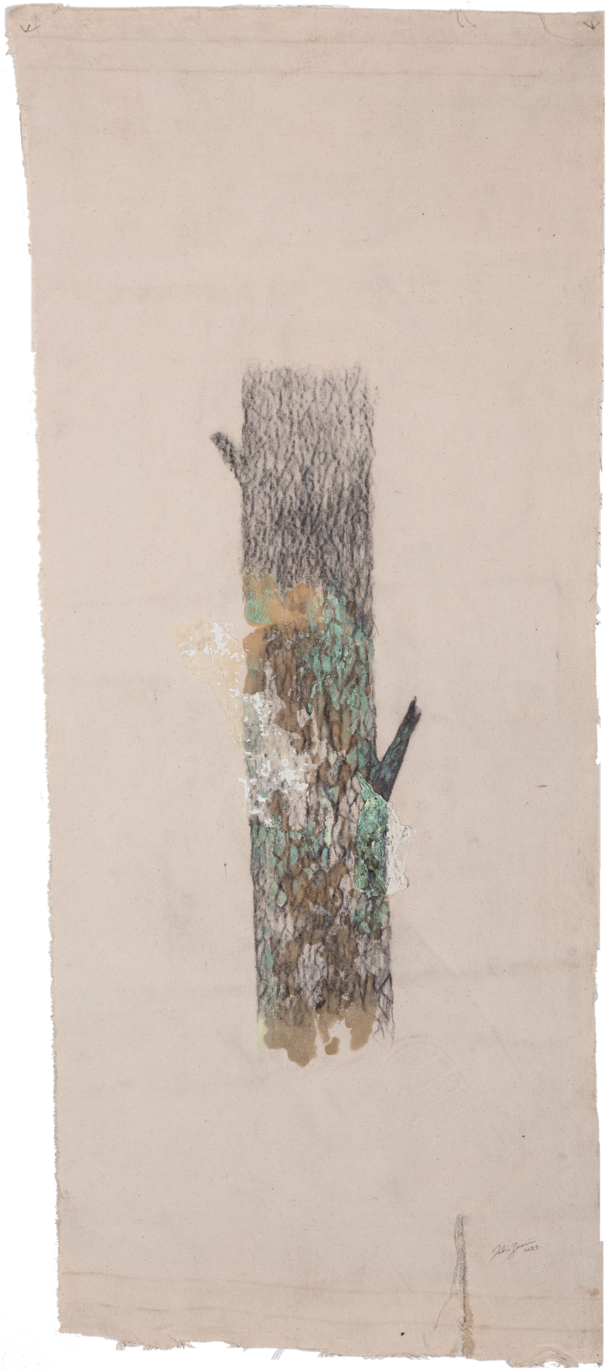 "For the past 3 years, I have collected elements – mainly wall fragments from the Fayyad Building facing the port of Beirut following the explosion, burnt candles left post-prayers in Harissa, and broken tree branches strewn across the streets of Beirut, cut intentionally to make charcoal for shisha smokers.