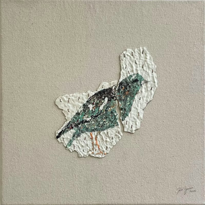 This series traces a process of collecting and transforming fragile materials—wall fragments, candle wax from Harissa cathedral in Lebanon (a place of pilgrimage for both Christians and Muslims), branches—gathered from Beirut’s damaged urban landscape. Baassiri reshapes these remnants into textured, layered canvases and mixed-media works that explore vulnerability, memory, place, and transformation.